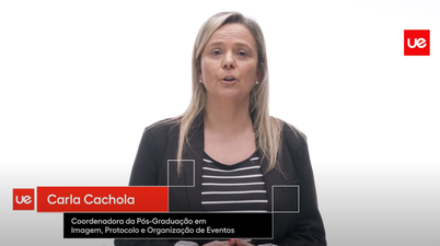 Carla Cachola, Diretora da Pós-Graduação em Imagem, Protocolo e Organização de Eventos, apresenta o programa.